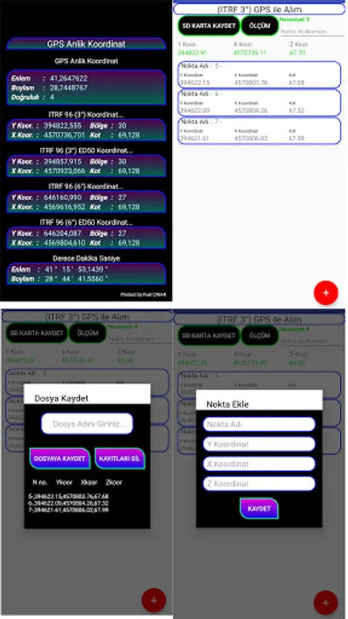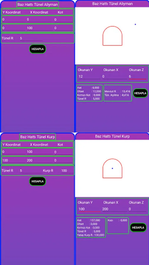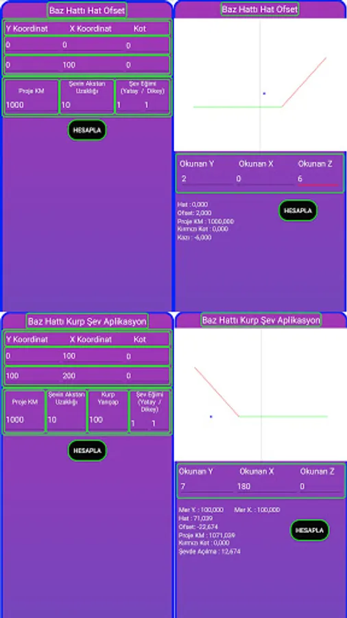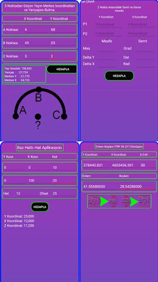 Calculate distances between known two coordinates and angles (grad, degrees, radians),