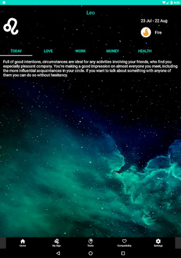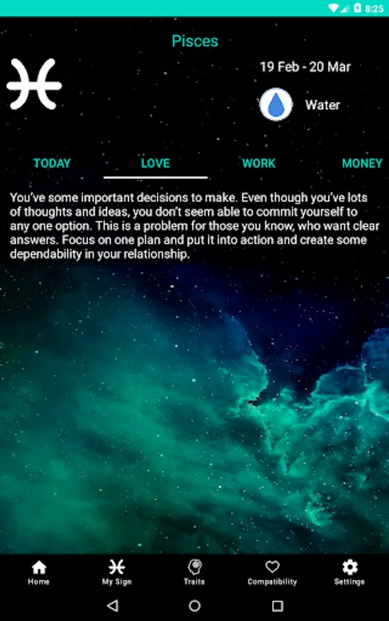 ⭐ Detailed horoscope for most important topics: Love, Health and Money and Work.