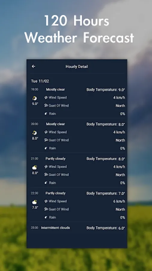 Weather is sometimes difficult to predict. This accurate weather app allows to find out a detailed 14 day weather forecast wherever you are, for any time of the day or for the next days just by tapping on the icons: