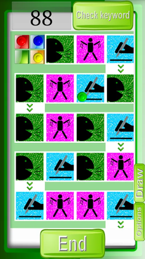 - If the keyword (and the background of the screen) is colored red, all teams have right to discover the keyword. If the keyword is found, the team that was on the move always moves forward two fields and the team that discovered the keyword always moves forward four fields. So if team that is on the move discover keyword, this team moves forward six fields (two fields due to the successful interpretation and four fields for successful discovered keyword).