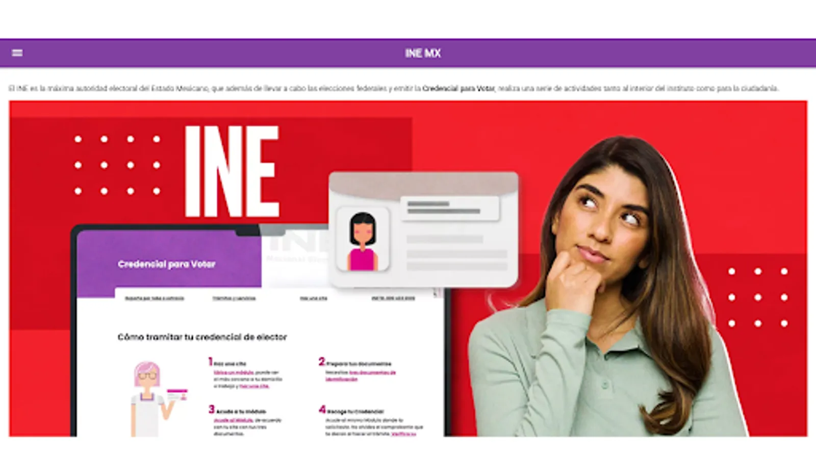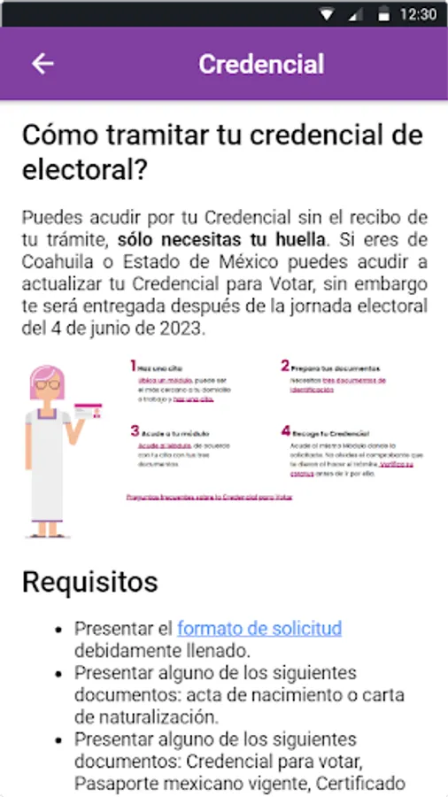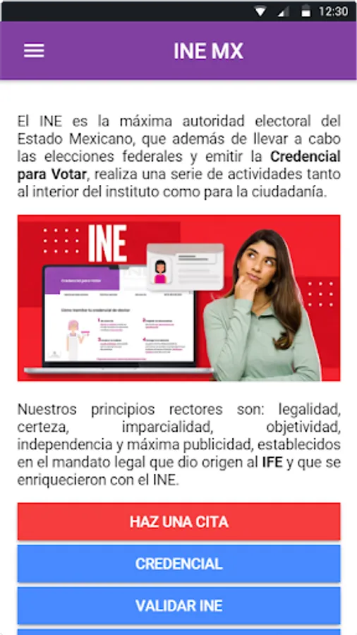 In this informative application you will find information on how to request an appointment at the INE (National Electoral Institute) of Mexico to obtain your voting credential.