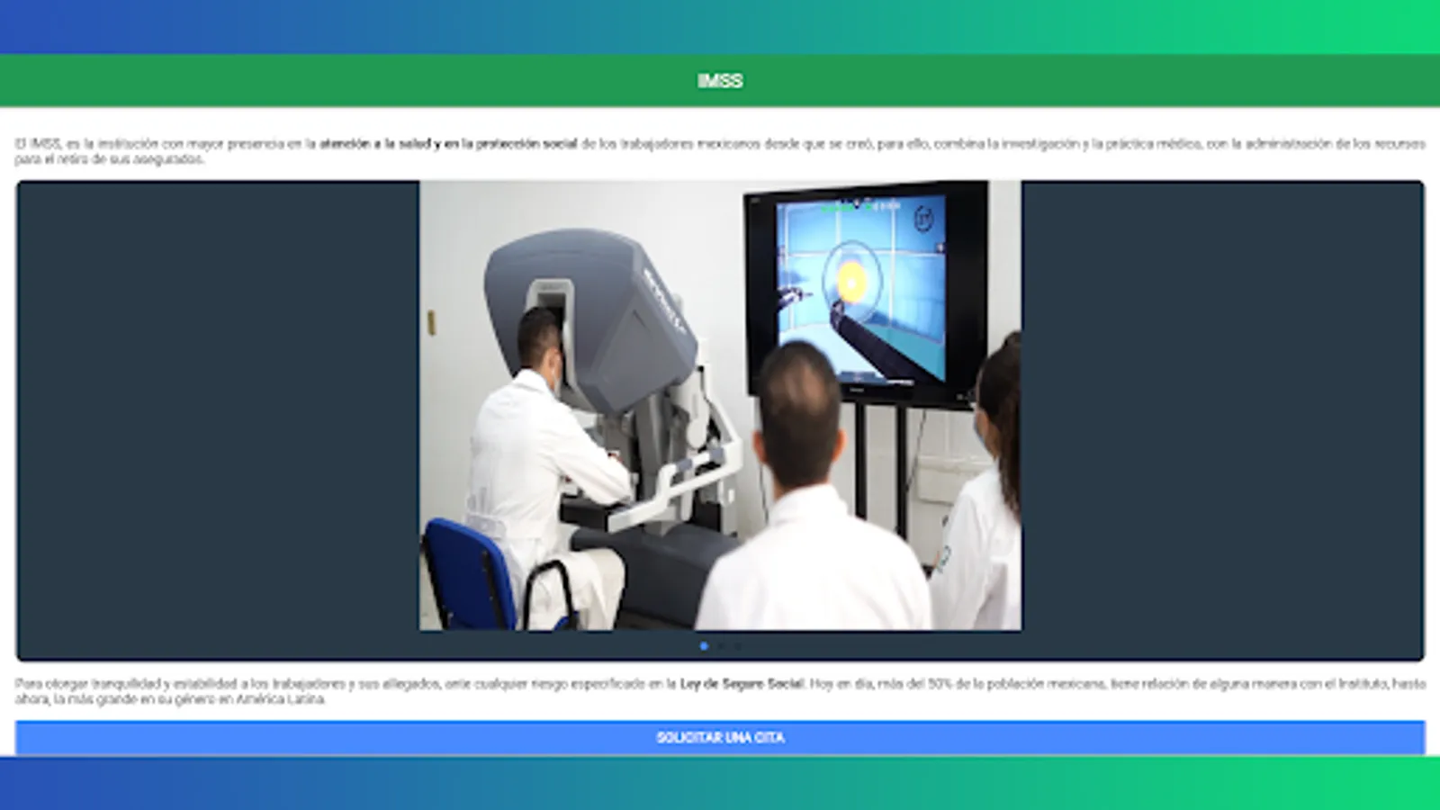 The application is presented as a public service to help Mexican workers learn to request an online appointment at the IMSS.