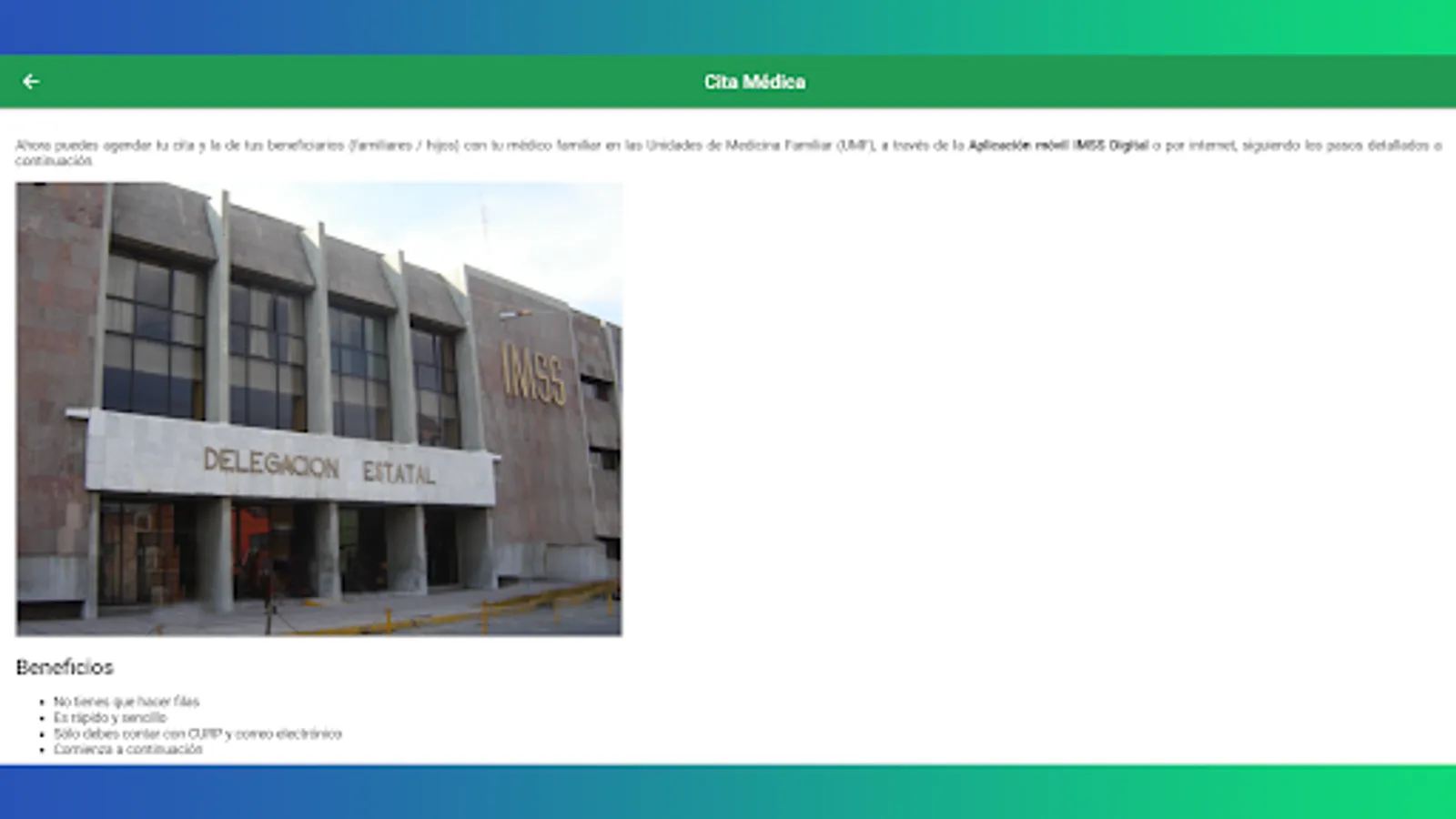 * Discharge of responsibility: We are not an official government partner, this is an unofficial application, only of an informative nature of the IMSS and all the information and links are available for public access on the web.