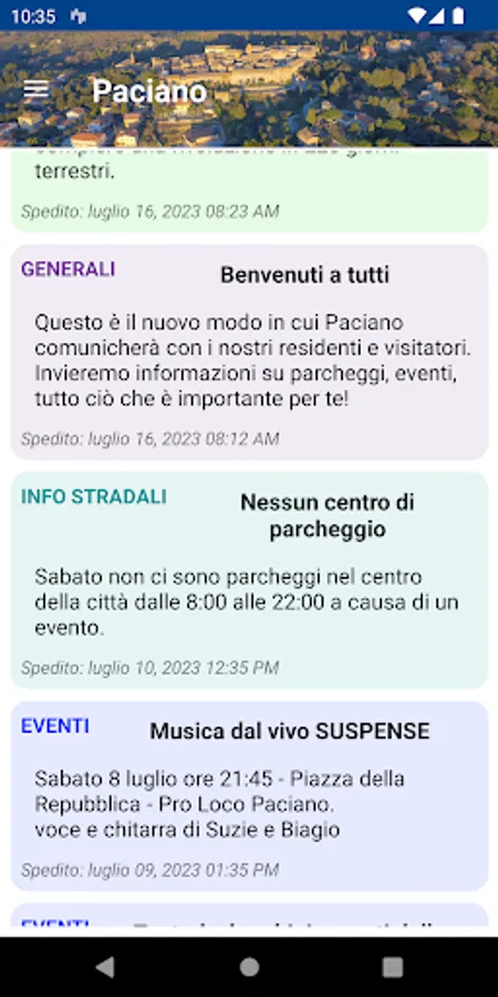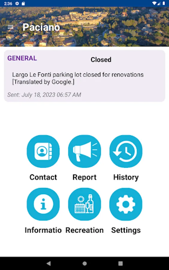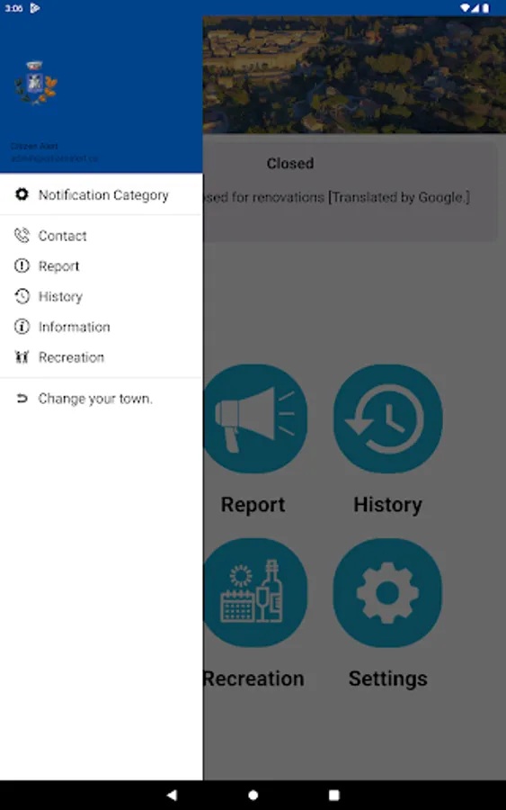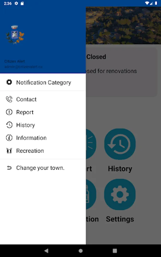 Receive important, interesting information, alerts, notifications on your device, any place, any time from your town. Instantly know the information that is important to you. Select what information you want using the settings page. A very simple interface allows you to see current alerts plus a history of older alerts. Use the home page buttons to receive your news, calendars, event information, etc. You can also send your town important information such as street lights our using the report page.