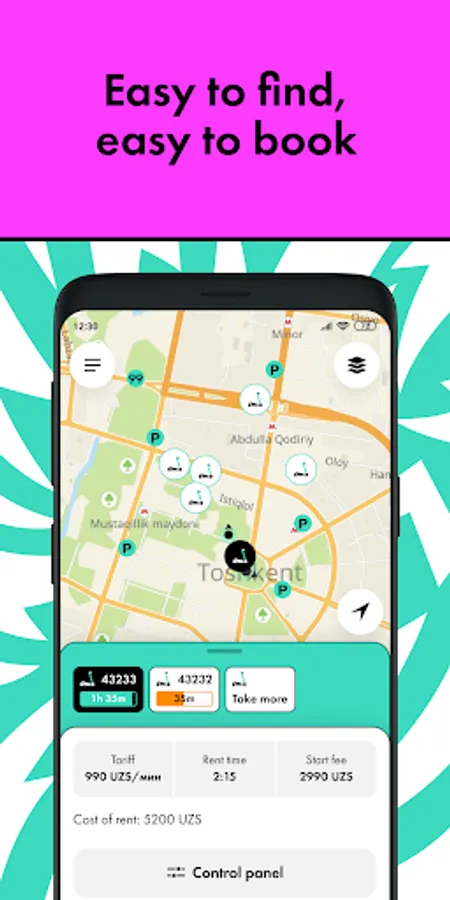Download the application, sign up using your phone number and right after 2 minutes go hit the road. The map helps you to find the nearest scooter, all you need to do is scan a QR code. Leave the scooter in an accessible place following in-app guide to finish your ride.
