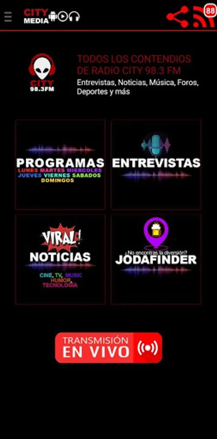 City Media is the application of Nte Radio City 98.3 Multiplatform medium from Catamarca, Argentina, an alternative and urban medium, with current events, and the best programming with content adapted to social networks.