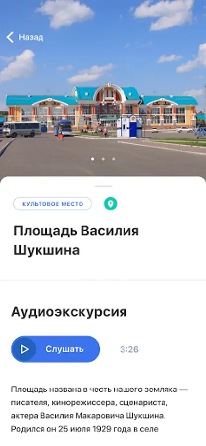 Your goal is to discover as many of these objects as possible. To open a place, you need to go to it, find a geolocation point and check in by clicking the "Open place" button. Having opened a place, information about it, as well as photos, will become available to you.
