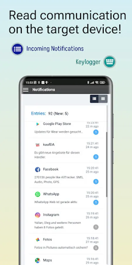 The app provides the ability to manage the account and target devices on which AllTracker is installed.