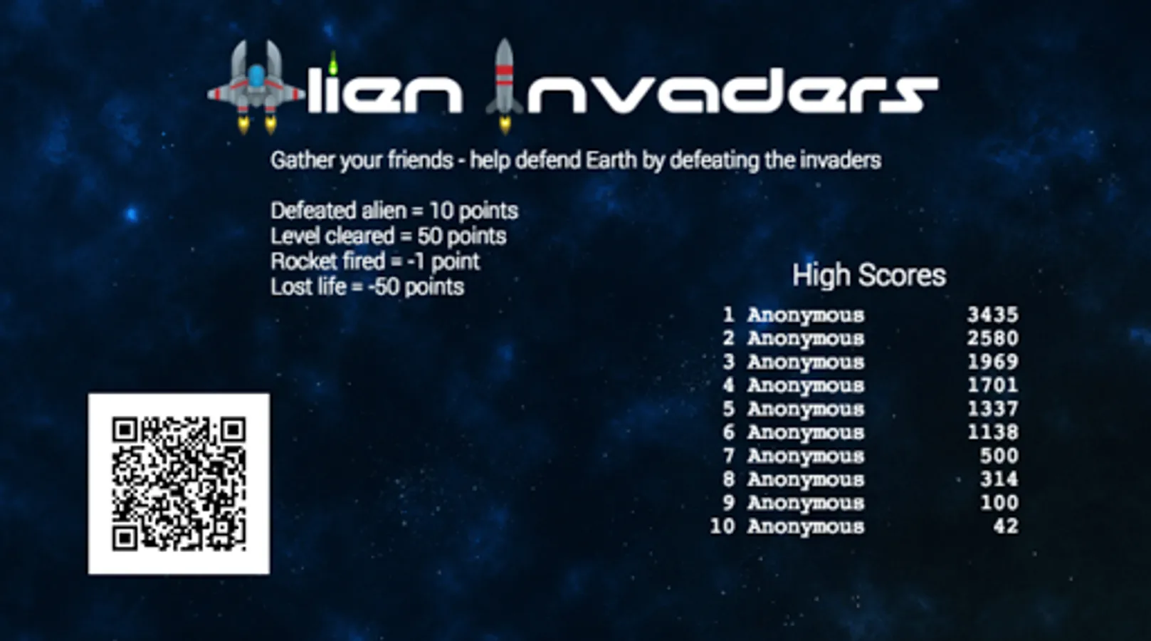 Alien Invaders is a simple free joyful multiplayer game you can play with your friends and family. Up to six people can play simultaneously.
