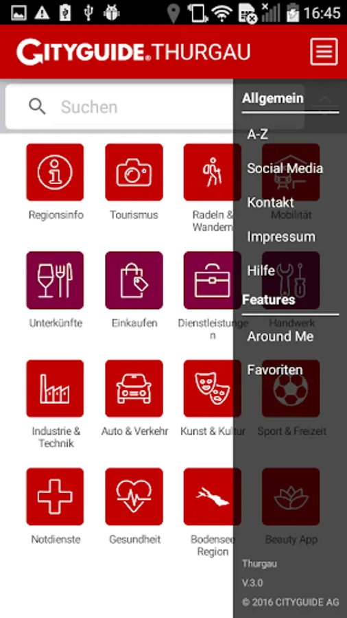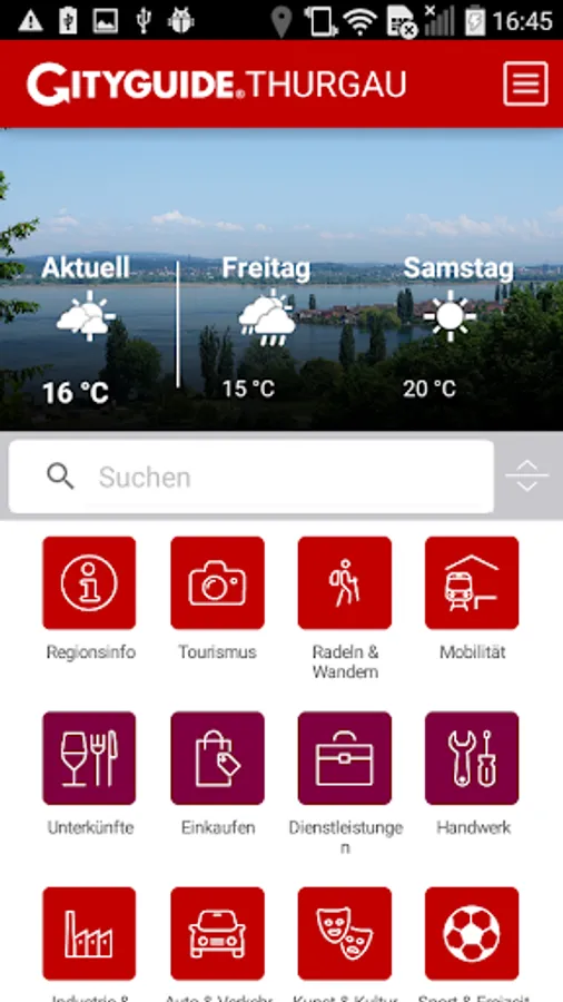 By CITYGUIDE Thurgau You have the whole city digitally for your pocket and all the important information around the clock always ready to hand. By CITYGUIDE inform yourself about events, top venues, industries and local businesses. Go to the 360 ° Panorama function on a virtual city walk to the shops into it, you can be opening times, services and brands show. Find with the Search & Around Me function, the nearest restaurant, the next florist, baker or fashion store and take advantage of special promotions (deals & coupons) in CITYGUIDE Thurgau.