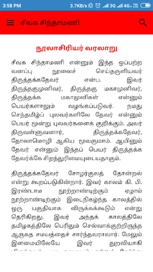 Civaka Cintamani is a classical epic poem. It is a Jain religious epic authored by Tirutakkatevar. Civaka Cintamani means "fabulous gem", is also known by alternative name Mana nool "Book of Marriages"