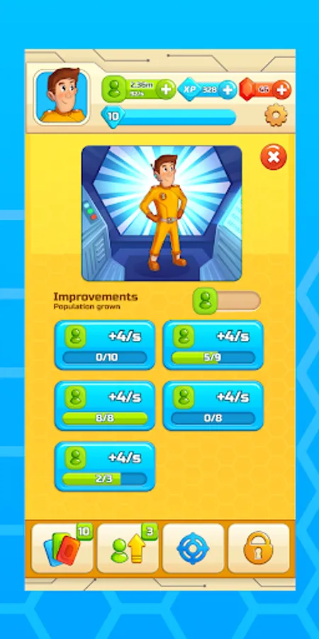Gems are the most valuable currency of the clicker game. Collect gems or purchase them to get XPs, mystery boxes and hundreds of bonuses faster. The gems help the Explorers rank faster. Gems are the fastest way for you to lead the leaderboards of Ages Evolution Idle Tycoon.