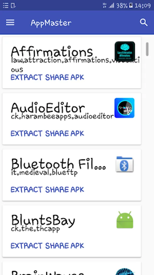 AppMaster is a customizable APK manager for Android: extract any installed app, mark them as favorite, share .apk files easily and much more.