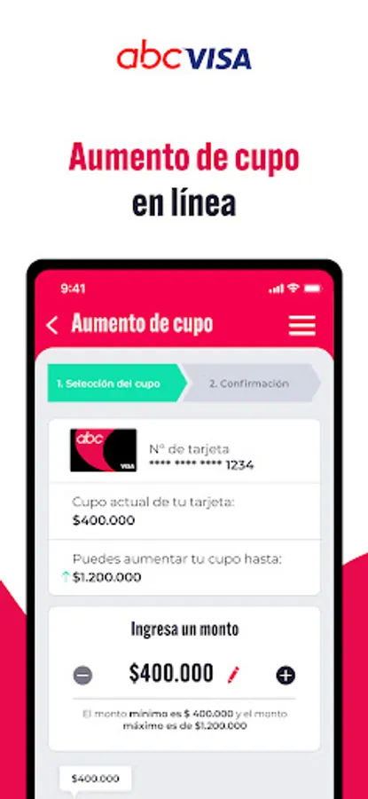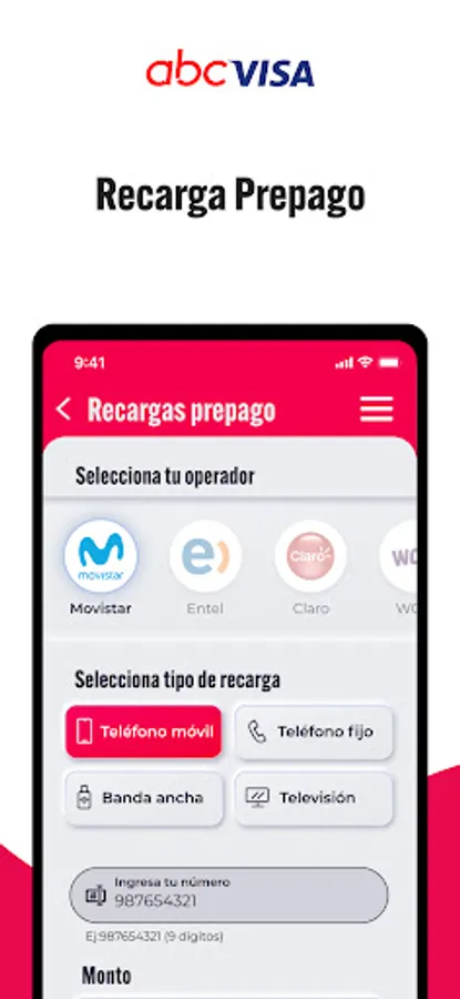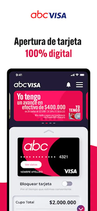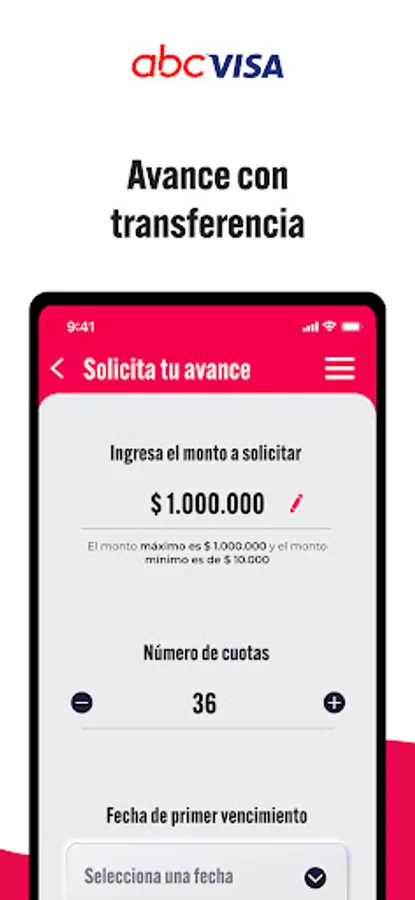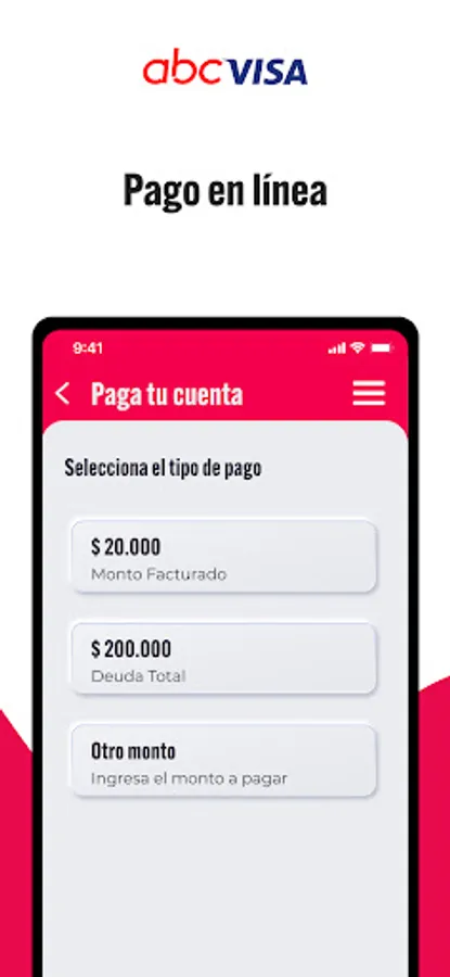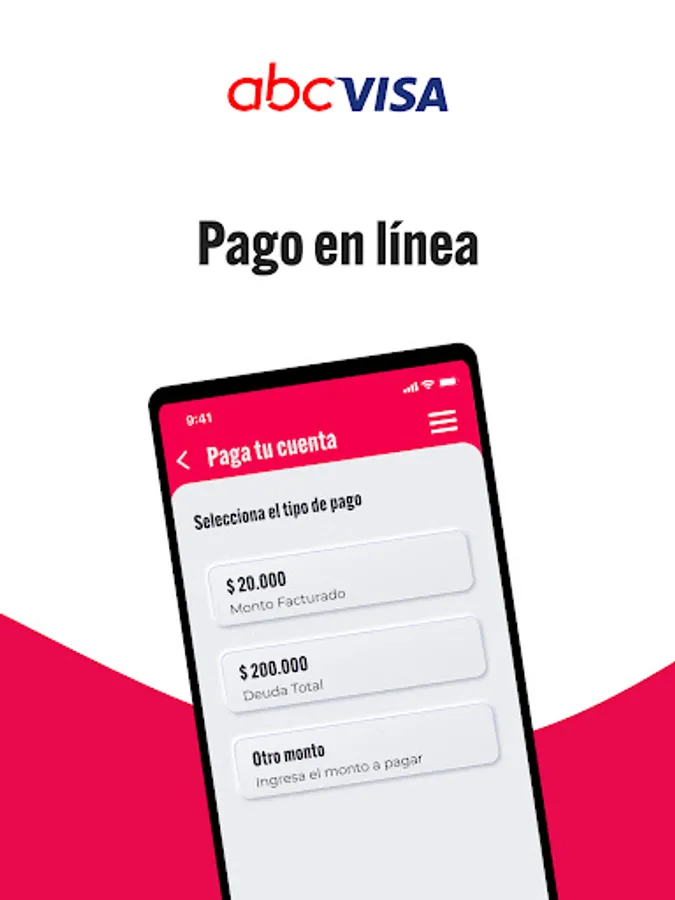 • Pay your billed amount, credit or pay the total debt of your abcvisa card with any bank through Khipu.
