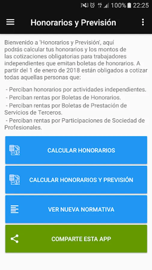 Welcome to 'Fees and Forecast', here you can calculate your fees and the amount of mandatory contributions for independent workers who cast ballots in Chile fees. From January 1, 2018 are required to list all those who: