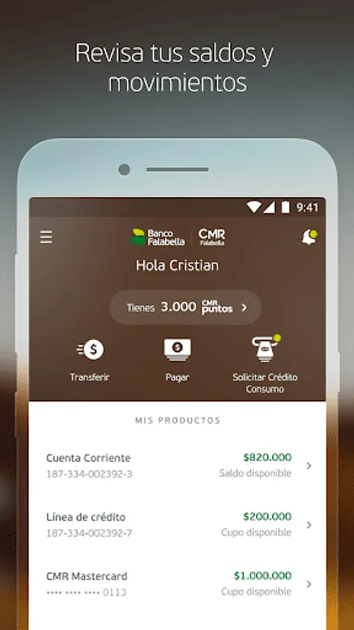 · Pay your CMR Card with any bank and your credits or accounts with your Banco Falabella Account