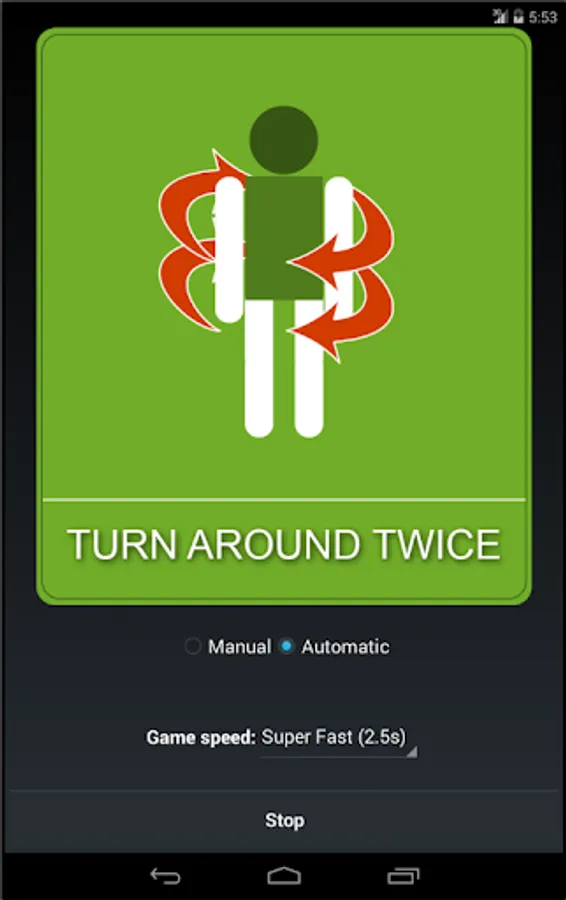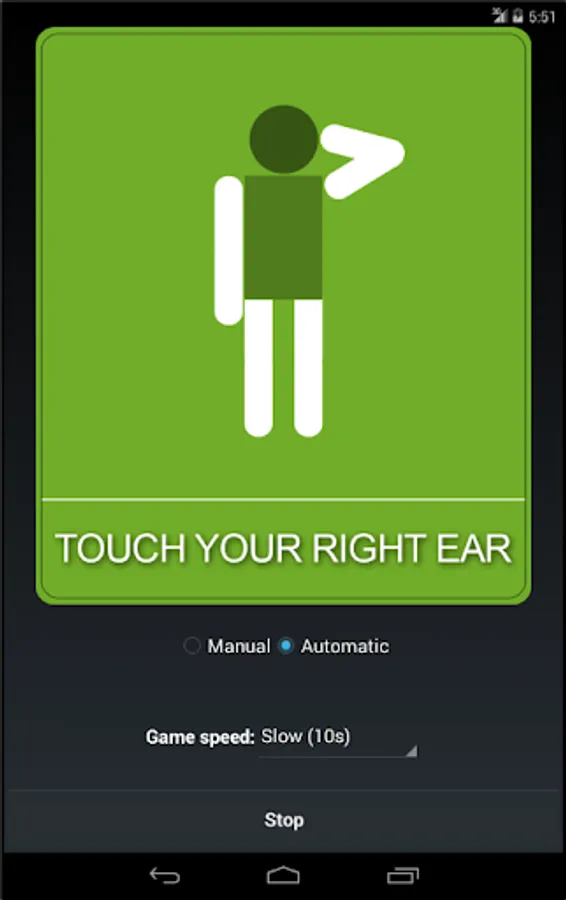 Test your mental acuity with this simple Simon Says game. You may go at your own pace and move on to the next action with the press of a button or join in on the fun and set it to automatic with four game speeds ranging from a casual slow speed to ridiculously super fast. Be sure to prepare ample amounts of space beforehand to avoid injuries involving flailing limbs.