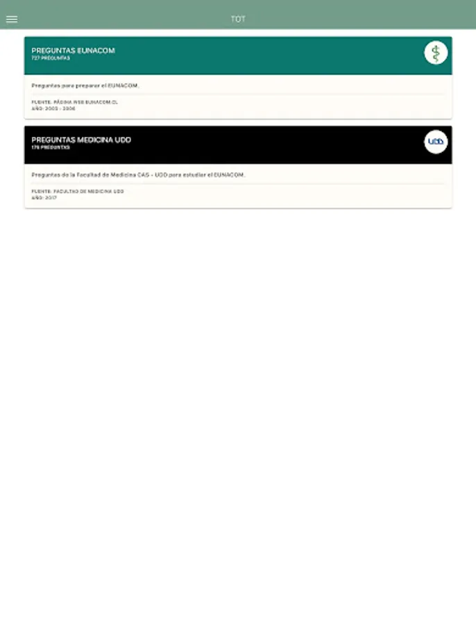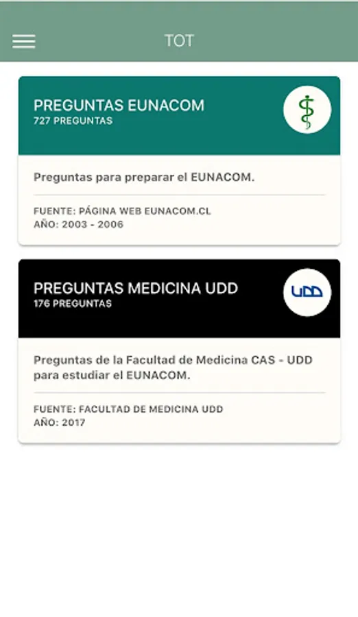 The mobile application to train the theoretical section of the Single National Assessment of Knowledge of Medicine (EUNACOM).