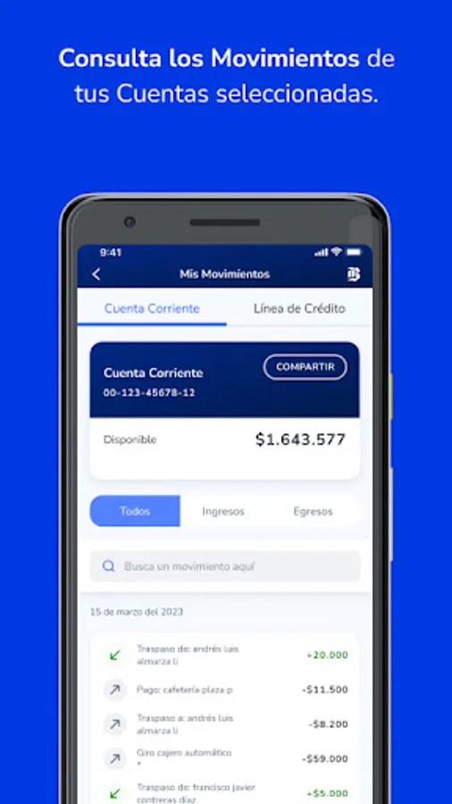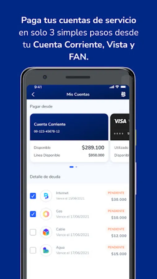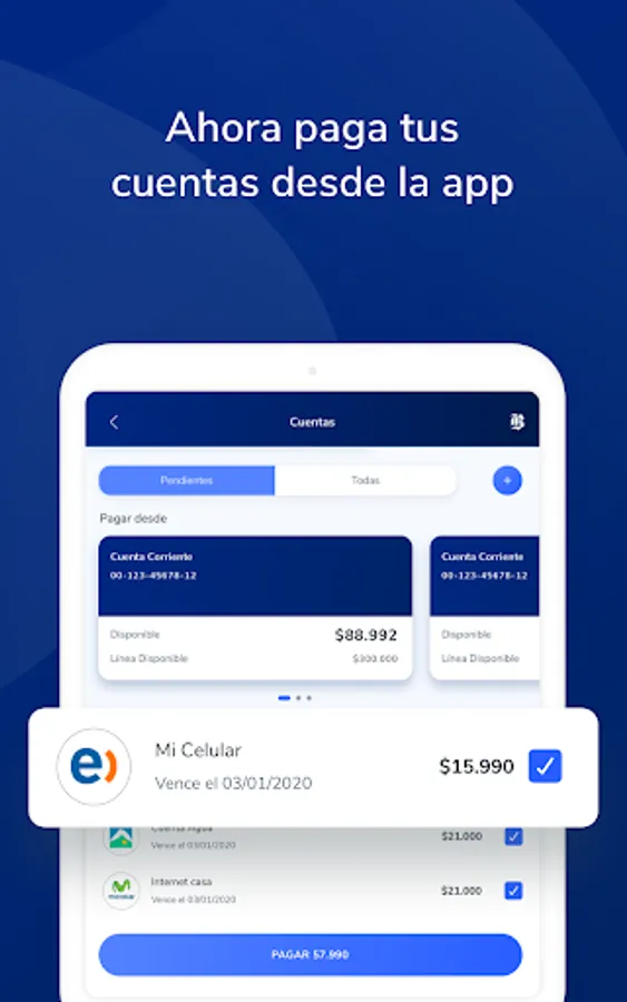 Check the balance and latest movements of your accounts and credit cards, transfer to third parties, pay your cards and the amount used on your credit line. Also, you can pay your service bills