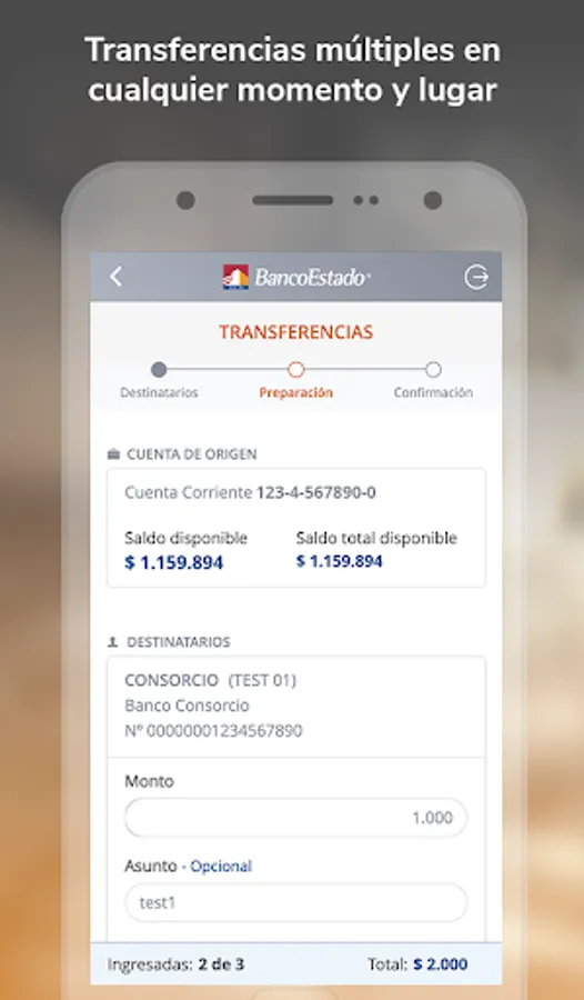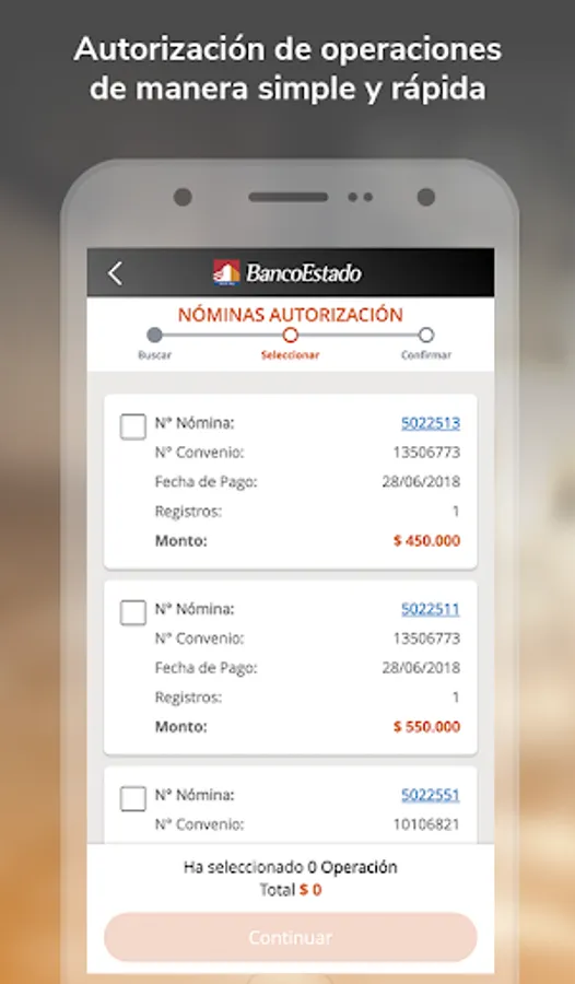 This service is aimed at proxies of organizations and aims to facilitate the authorization of transfers and payroll when they are not in their office. It has a consolidated consultation of the balances of your current accounts to validate the availability of funds, it allows you to navigate and authorize operations within the same session, on different Rut of the organizations of which you are proxy, it allows authorizing up to 15 transfers in a single process, authorize and / or provision up to 15 payrolls in a single authorization process.