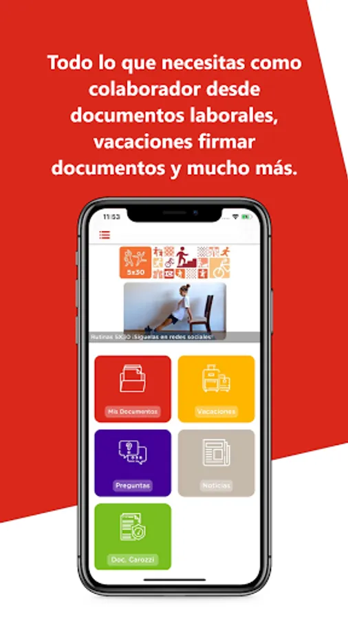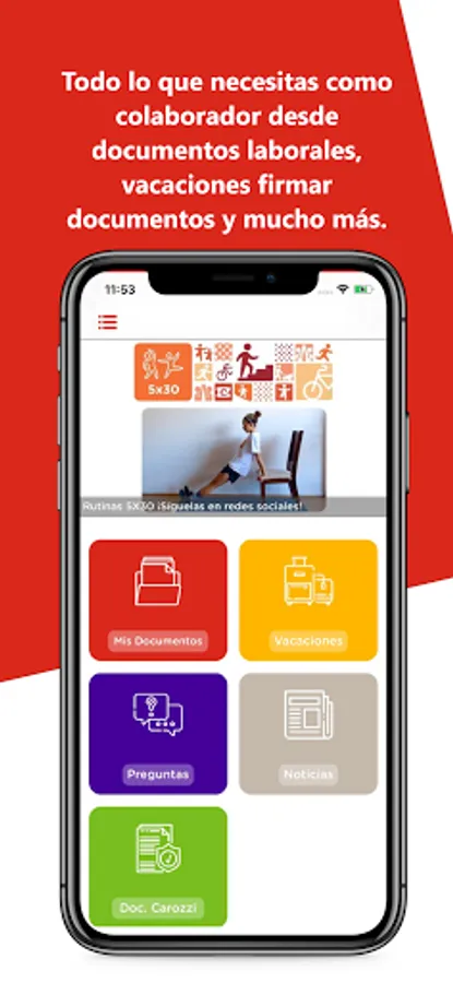 Mobile application to access all documents, personal file, request vacations, newsletter of interest, frequently asked questions, sign documents, download settlements, contracts, among others.