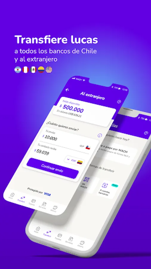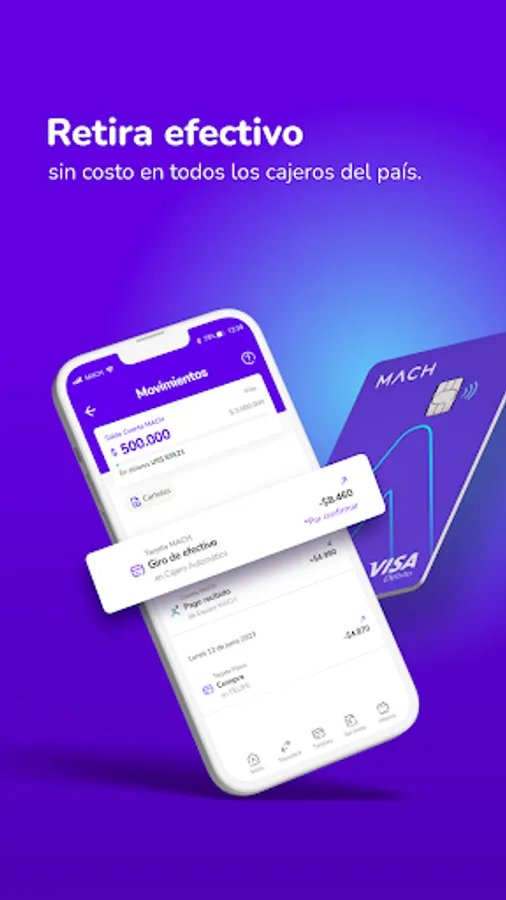 Open your MACH checking account and ask for your new Visa debit card, you can take advantage of cashback and discounts at your favorite stores such as Orders Now, AliExpress, Petrobras, supermarkets and many more. You can make purchases in all businesses in Chile and abroad, draw money at ATMs, send money abroad. You can also save Lucas directly from your cell phone and much more!