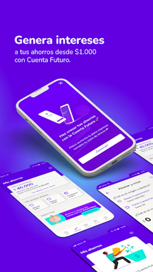 Open your Future Account and generate interest from $1,000 according to the average monthly balance of your account or invest in Mutual Funds, grow your savings with MACH!