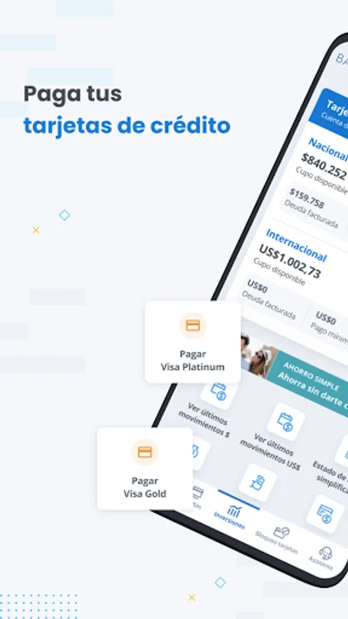· Check out the latest movements of your accounts and cards in Pesos and Dollars.