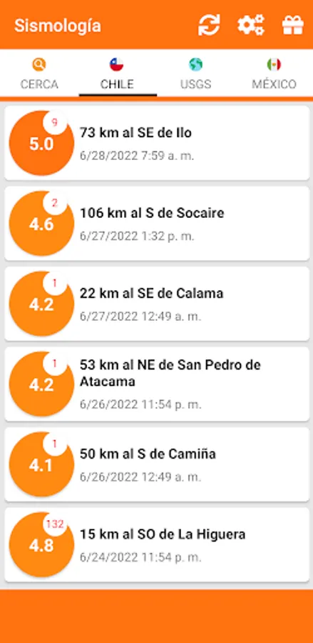 Get information of the latest earthquakes from the USGS, Mexican, and Chilean seismographic services.