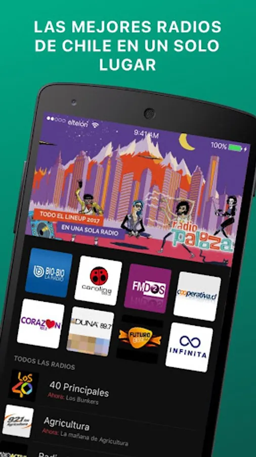 Radios: DNA, Rock & Pop, Carolina, Disney, FM Two, Heart, 40 Principales, Concert, Agriculture, Cooperative, UNO, The key, Pudahuel, Paula, Zero, Infinita, Bio-Bio Santiago, Bio-Bio Concepción, Digital FM, pulse, Festival, Imagina, Future, Active, Romantic, Beethoven, The conqueror, Tribute, AE Duoc UC, Duna, Fenix, Positiva FM, U chili, Udec,