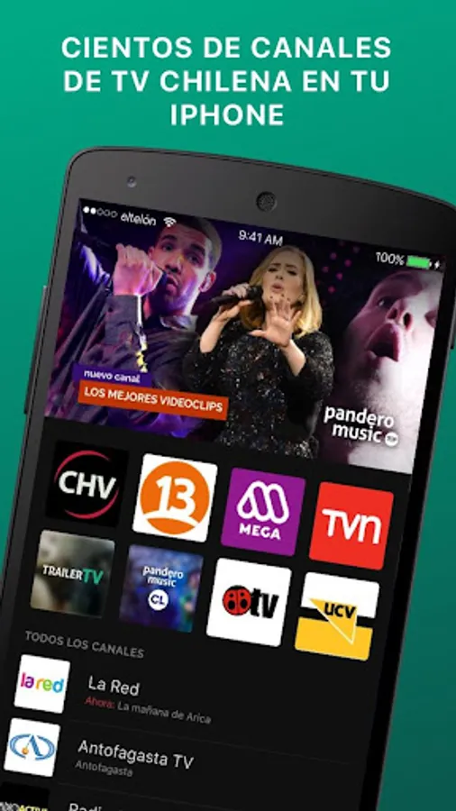 Some channels available: Canal 13, Chilevisión, Mega, TVN, Network, UCV, Canal 13 Cable, Chamber of Deputies TV, Nuevo Tiempo, Teletrak, Arica TV, Holvoet TV, Channel 9, TVU, Campus TV, Canal CDN, Contivision Channel 11, Telesur, penguin, TV Network, Umag TV, Channel 2, Channel 33, Inet TV, Channel Antofagasta.