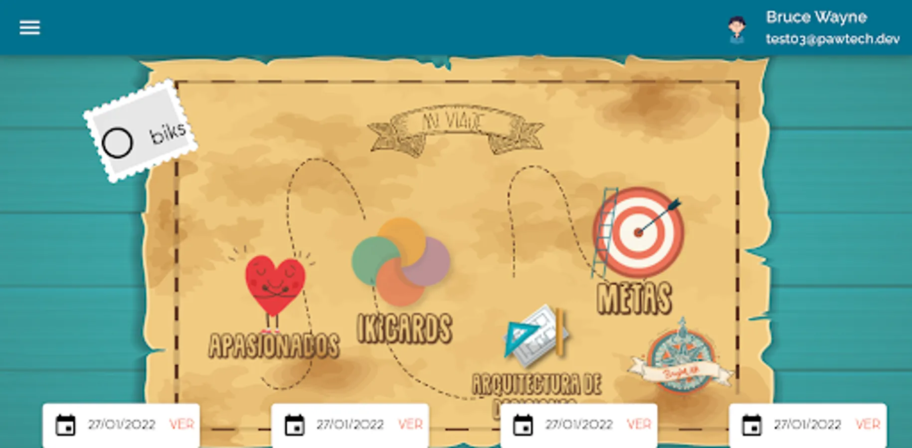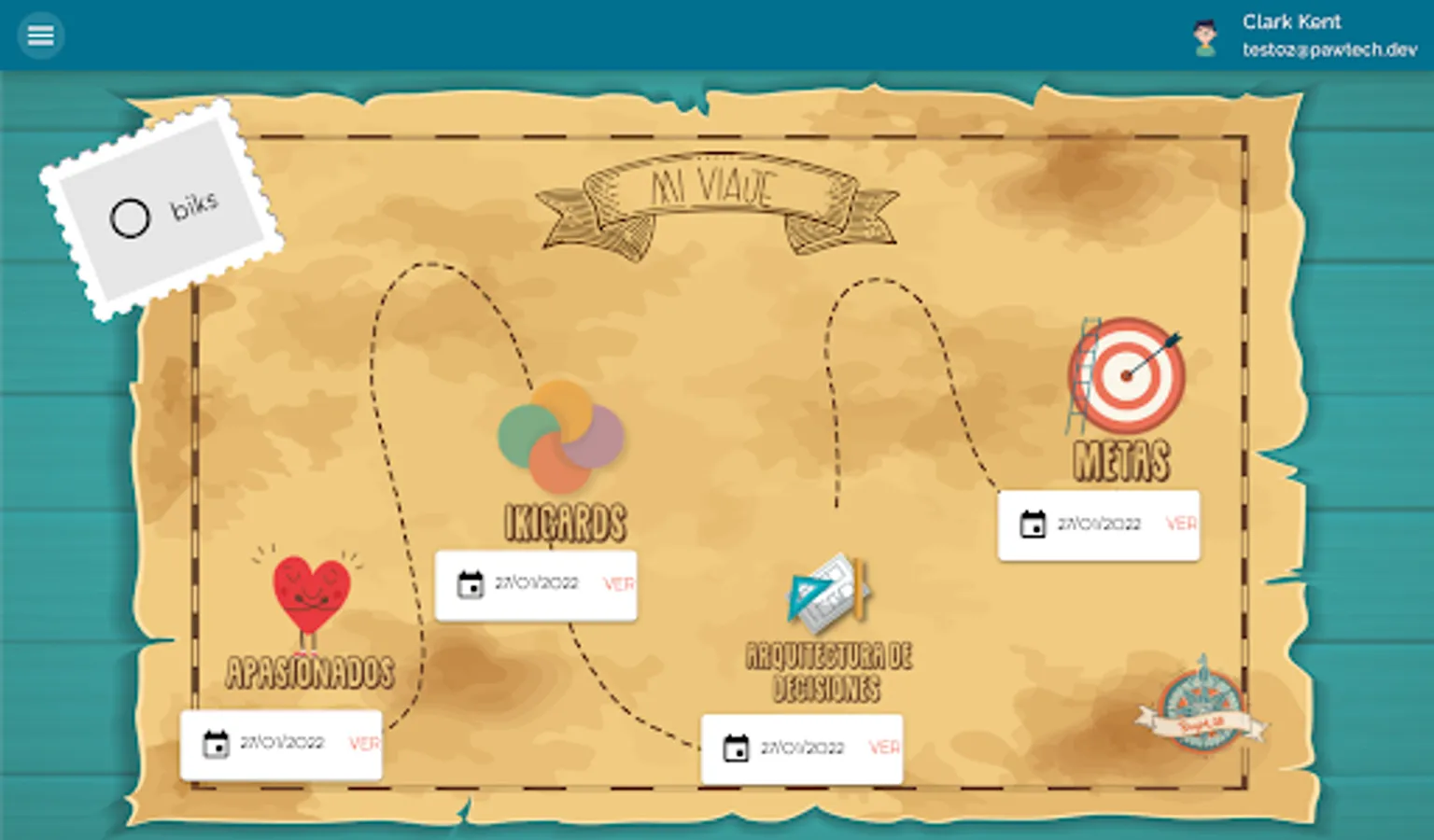 Las 4 estaciones son; Apasionados, Iki Cards, Arquitectura de Decisiones y Metas.