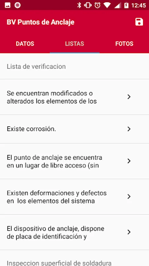 Inspección de Puntos de anclaj Screenshots