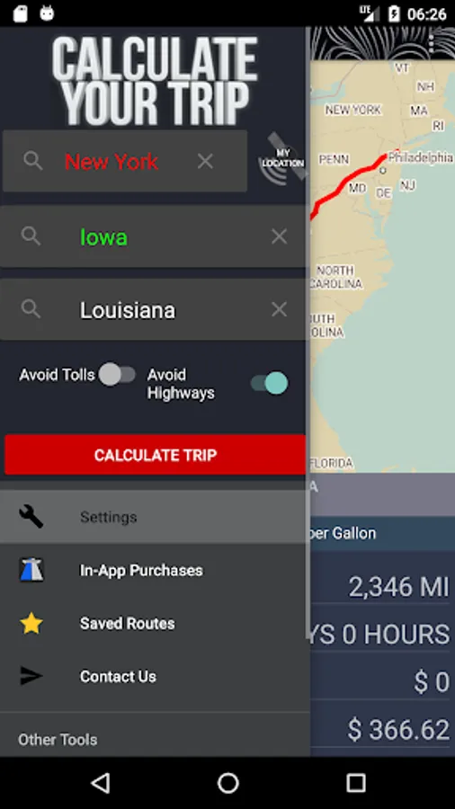Get one of the best travel calculators on the market. Get quick costs based on your car's performance and gas costs. Thanks to www.USATOLLS.com