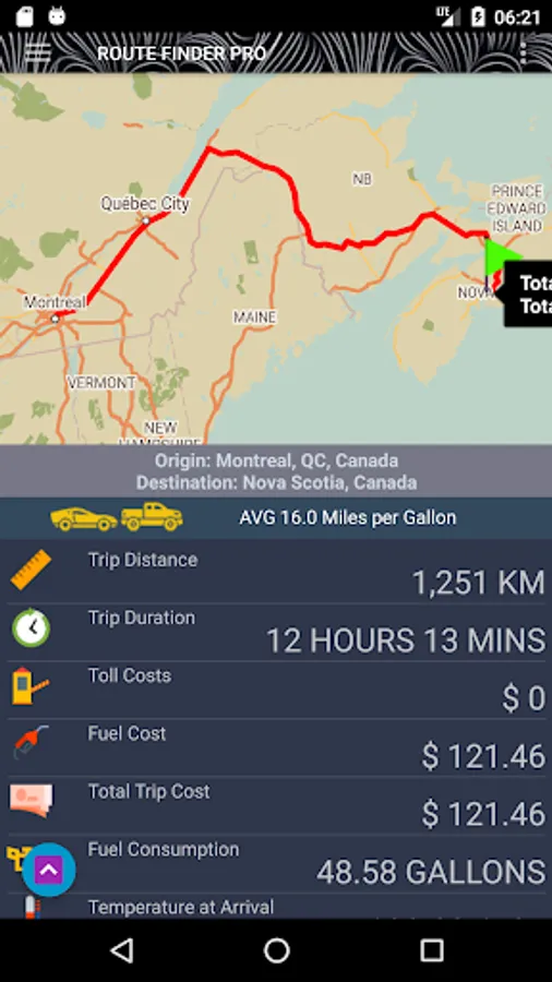 Get Information about: Toll Costs, Distance to travel, Trip Duration, Gas Costs, Gas Consumption, Temperature on arrival at destination. Step by step instructions compatible.