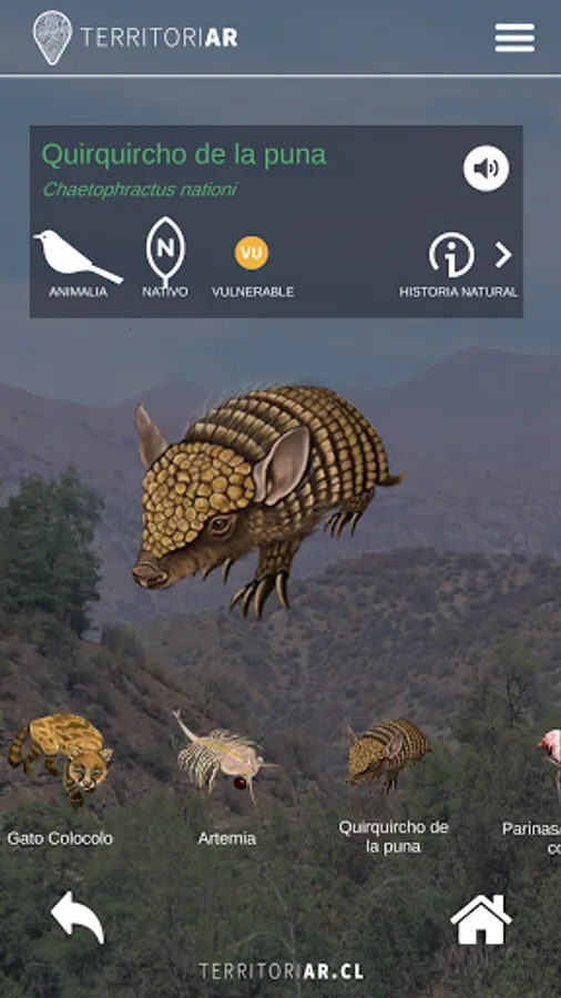 It allows users to enhance their travel experience, using augmented reality technology and geolocation to know the biodiversity, geological landmarks and representative ecosystemic interactions of the territory and collaborate in the registry of sightings and observations of flora and fauna of the place.