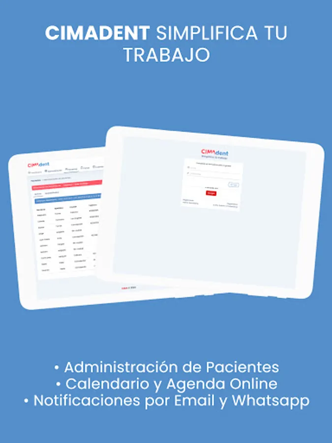 CIMADent is a Dental Software for the management of clinics and dentists who work in different places that will help you organize your patients and their records, as well as being very easy to use.