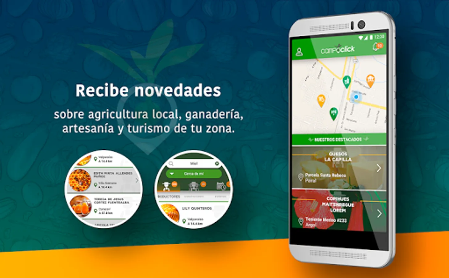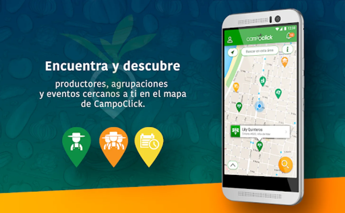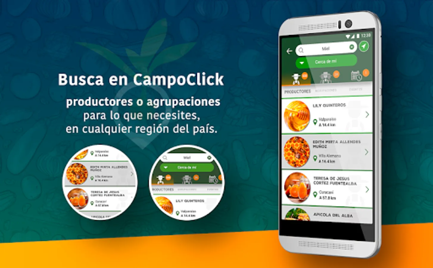 CampoClick is a joint initiative between the Natural Resources Information Center (CIREN) and the Institute of Agricultural Development (INDAP), both of the Ministry of Agriculture of Chile, whose main objective is to bring the production of Farming Family Farming (AFC) ) to people, through an easy-to-use, friendly, free mobile application with national coverage and real-time information.