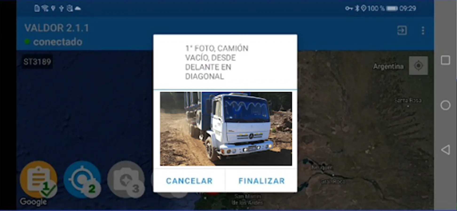 Validate the origins of the wood that each supplier offers, with georeferenced photographs of their truck without load and with load, being within a predefined geofence through the polygon of the property that offered the wood. Consider alerts to the user, improvements in sending photos and voice messages.