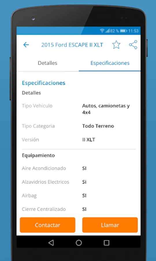 • Share vehicles directly from your mobile device to your network through Facebook, Twitter, WhatsApp, email, SMS and more.