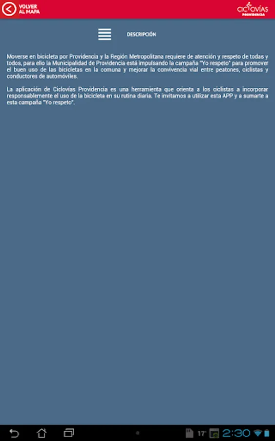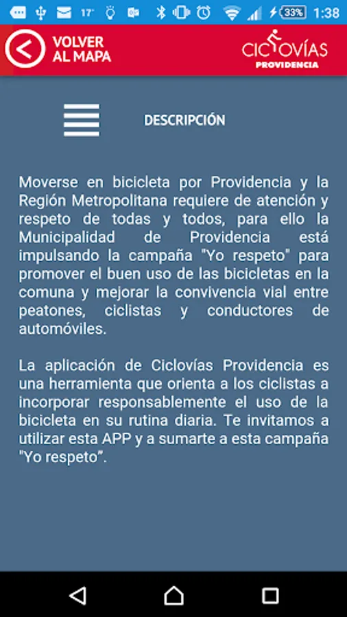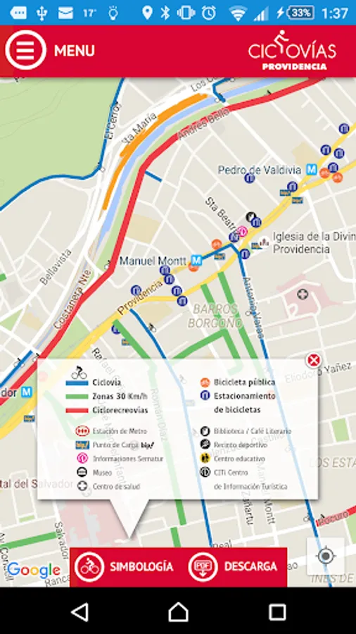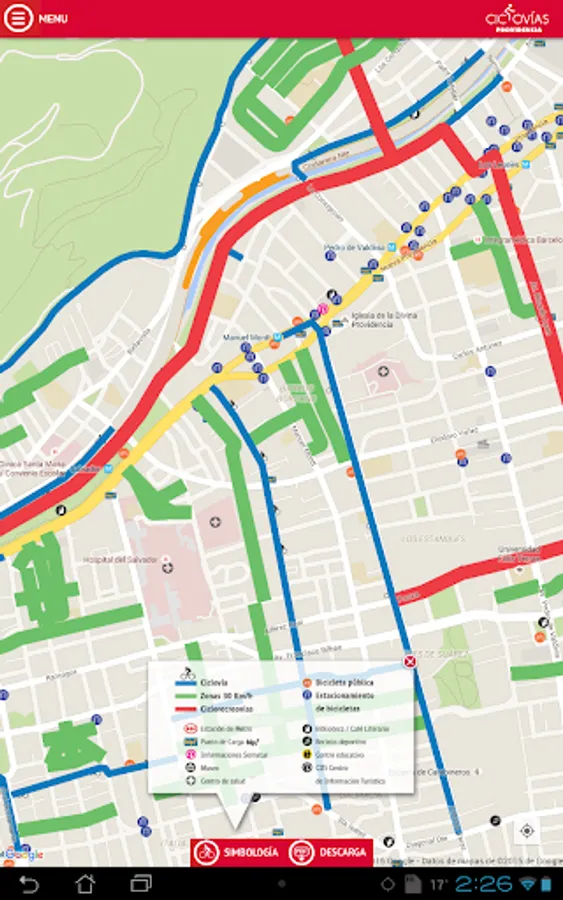 It is a free application available for IOS and Android. You'll find a map with details of cycle paths, Zones 30, CicloRecreoVías, public bicycle parking, places to rent bikes, plus educational and health centers in the district.