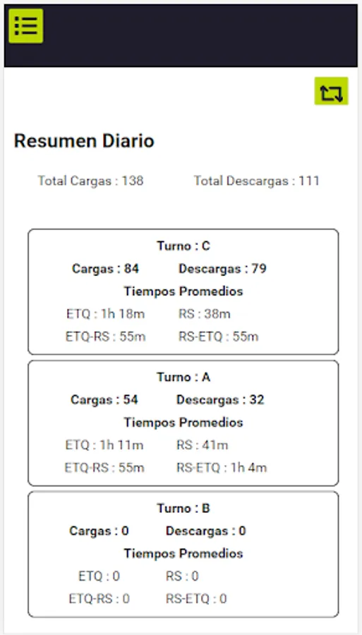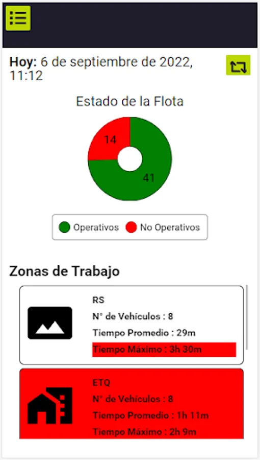 Operational Platform for the company KDM Treatment of Santiago de Chile. This consists of a dashboard where it describes the different stages of the operation processes, as well as the status of the fleet and other operational information such as daily unloading summaries and daily information per shift.