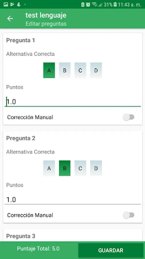 The answer sheet of each student is incorporated into the application, which allows correct proofs of alternatives and true and false.