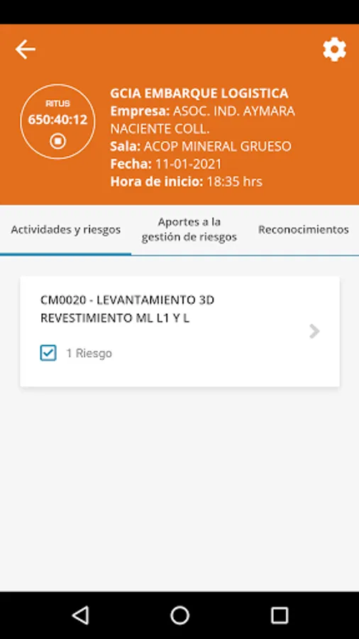 The Ritus application is a security tool for all types of operations to be carried out. It can be used by all personnel attending the mine, be they workers, subcontractors, government security personnel, staff and students of the University of Tarapacá. Through Ritus you can declare risks and security controls, register attendance and commitments of all participants. With Ritus you can share your planning (in real time) on a whiteboard so that everyone can see the work.