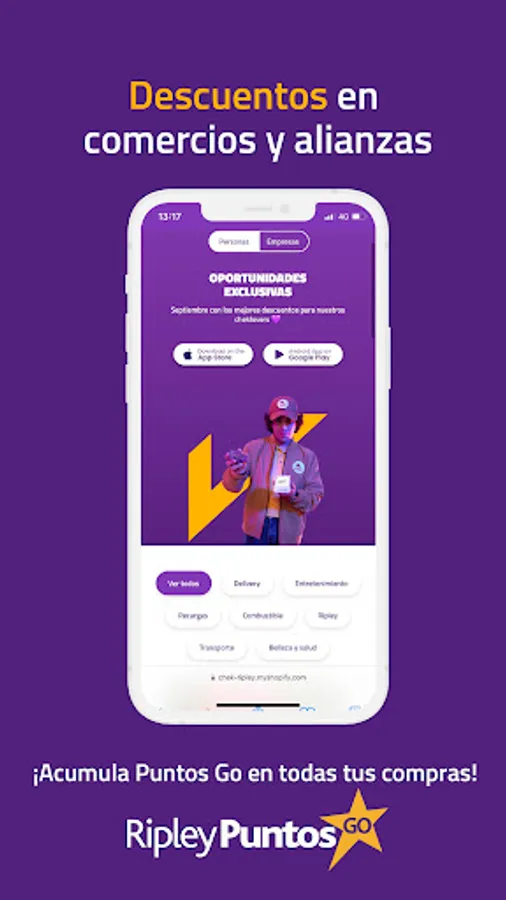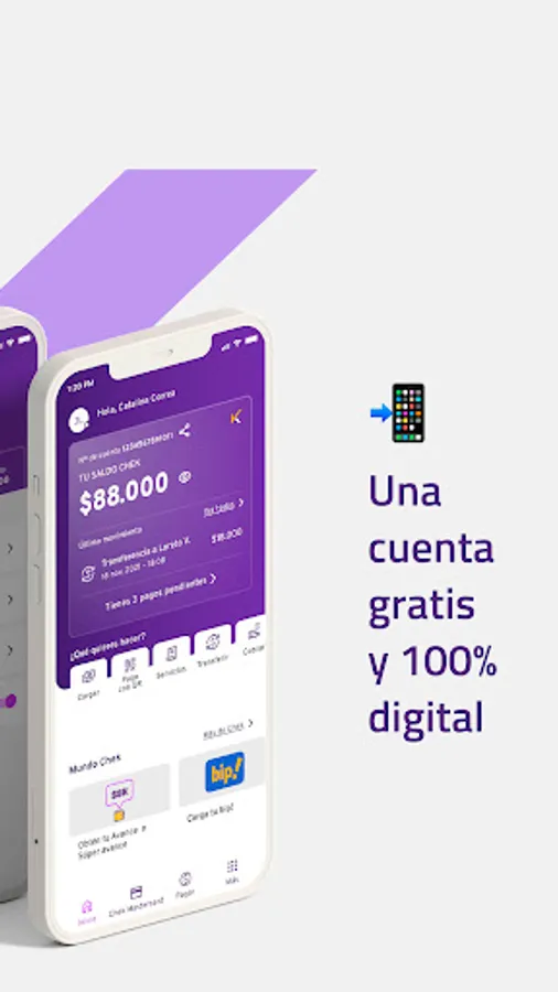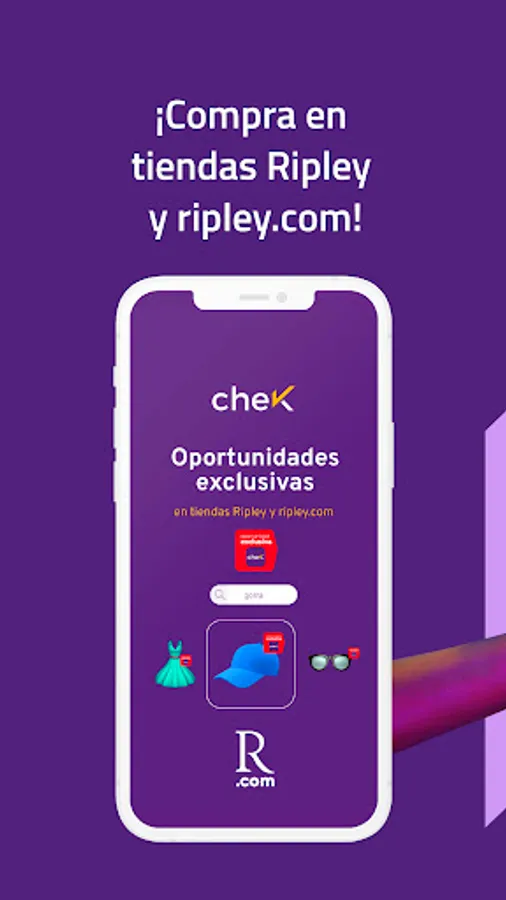 We are Chek, a 100% digital account. Manage your money from the App, collect, pay, divide and access exclusive opportunities at ripley.com and Ripley stores. But this is not all... You don't need physical cards! We have a Chek Mastercard card with which you can make purchases online at national and international sites and also face-to-face purchases on Android phones with NFC technology, activate it from the App, it's free ! 😎 Also, you can pay your bills and recharge your prepaid services directly from Chek. Just like charging your beep! and say bye to the ranks. And finally, all your purchases will accumulate Ripley GO Points.
