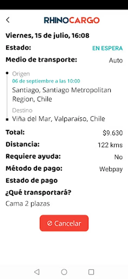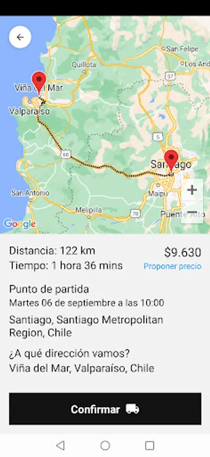 When you request the service, the application will send a notification to be accepted by a Driver. When confirming the trip, a summary file is generated and you can make the payment. Once Client and Driver are connected, they will be able to coordinate the delivery details of the cargo.