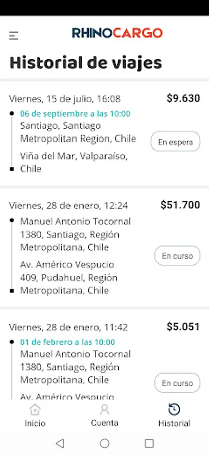 Rhino Cargo is safe, you will pay directly in the application avoiding the use of cash. You will also be able to review the route of your shipment and have a history of services used.