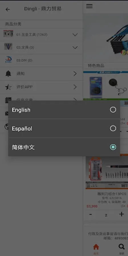 This is an app for Dinglis (https://dingli.cl) online B2B ECommerce platform, which allows our clients and retail partners to make purchase right in the app. The app supports 3 languages: Chinese Mandarin (zh-cn), English (en-gb) and Spanish (es-es).