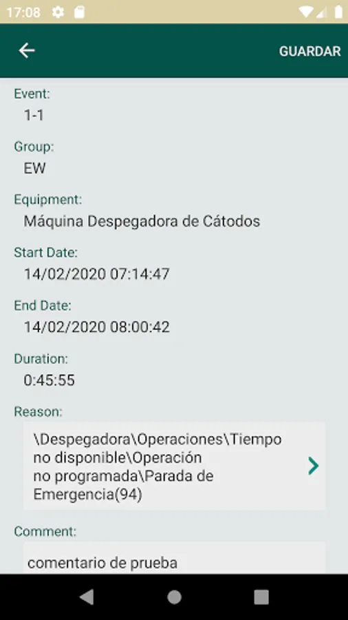 Mobile version of SGM - Los Bronces Maintenance Management System