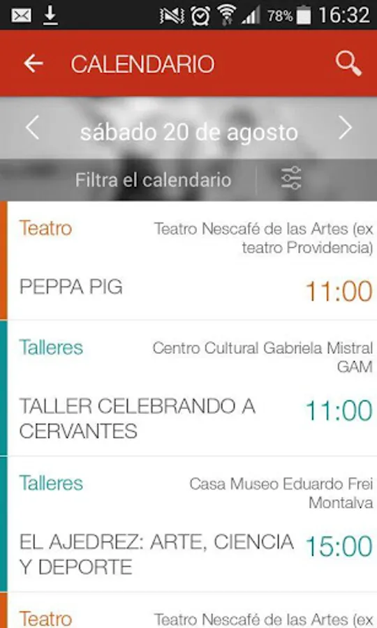 -Make Georeferenced searches of events and activities in music, theater, dance, film and exhibitions close to you.